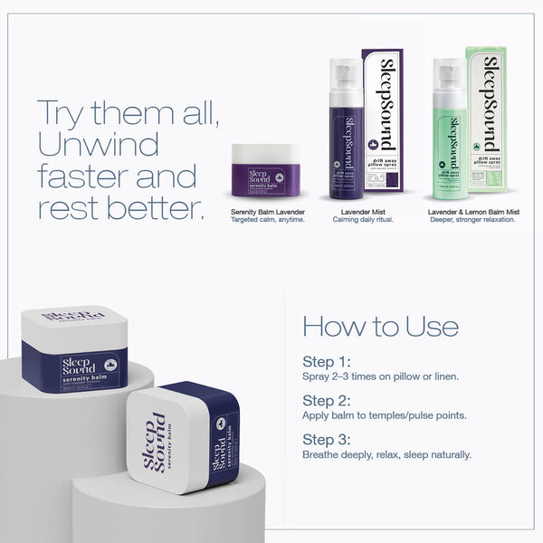 Sleep Sound is a collection of products designed to help you relax and improve your sleep naturally, including balms and sprays infused with soothing ingredients like lavender.